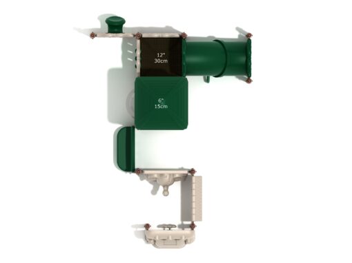 Jump into a safe and whimsical fortress of play with the Kansas structure. Designed to accommodate children between six and 23 months, as well as older kids, this structure is great for a wide range of ages, interests, and ability levels. On the ground floor, children will engage with many charming pretend “sets” and activities, including a Drum Panel, Bench Panel, Elephant Crawl Through, a Store Panel, and a Car Panel, which all facilitate dramatic and creative play. Bordered by a metal barrier, elevated platforms feature a charming Ship’s Wheel to encourage kids to imagine life on the high seas, as well as a Bubble Panel, Tic-Tac-Toe Panel, and Gear Panel with rotating shapes and levers. And the 12” elevated platform attaches to an incline Crawl Tube for extra active fun. ADA compliant and full of safe, engaging events, and a line roof provides plenty of shade on sunny days.