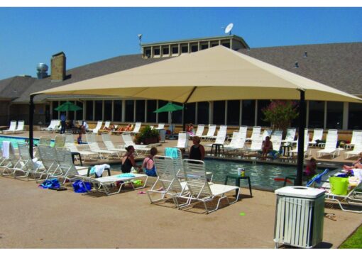 One of the most economical and functional ways to provide shade to a playground, park, or pool space is to incorporate a square or rectangular fabric shade structure. Our square shade units come in widths of 10 ft. to 38 ft. and offer excellent sun protection, while keeping costs affordable. Choose from surface or in-ground mounting designs. Superior Shade offers these shading structures in multiple powder-coated metal and fabric color choices. Available in 8 ft. and 10 ft., and entry eave heights.